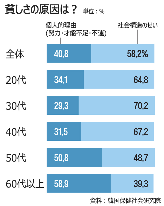 > 韓国国民の60%「貧しさは社会のせい」